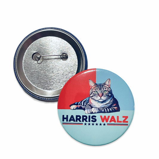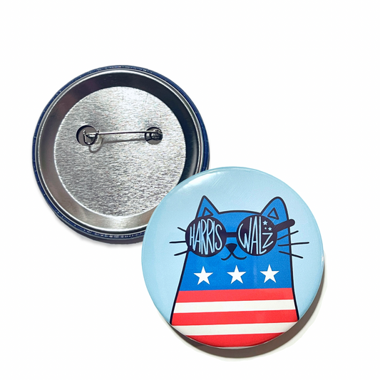 2.25” Harris Walz 2024 Button Cat Lady Pinback Kamala Campaign USA Election Vote