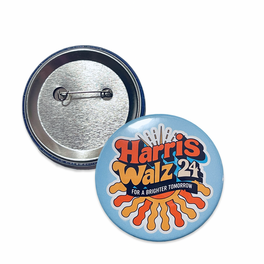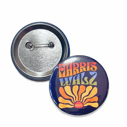 2.25” Harris Walz 2024 Button Pinback Retro Sun Campaign Election USA Vote Kamala Hippie Joy