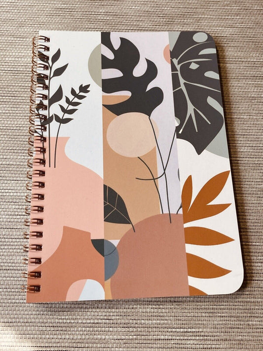Boho Plants Spiral Notebook 5.5x8in Journal 84 Unlined Pages Soft Cover Handmade
