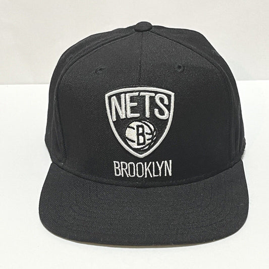Brooklyn Nets Snapback Hat Adidas Black White NBA Basketball Mens 100% Wool Cap