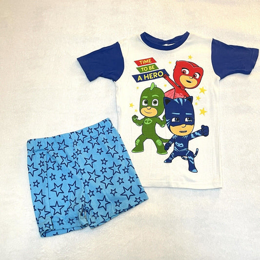 PJ Masks Sz 8 Pajama Set Time To Be A Hero Blue 2 Piece Short Sleeve Shorts PJs